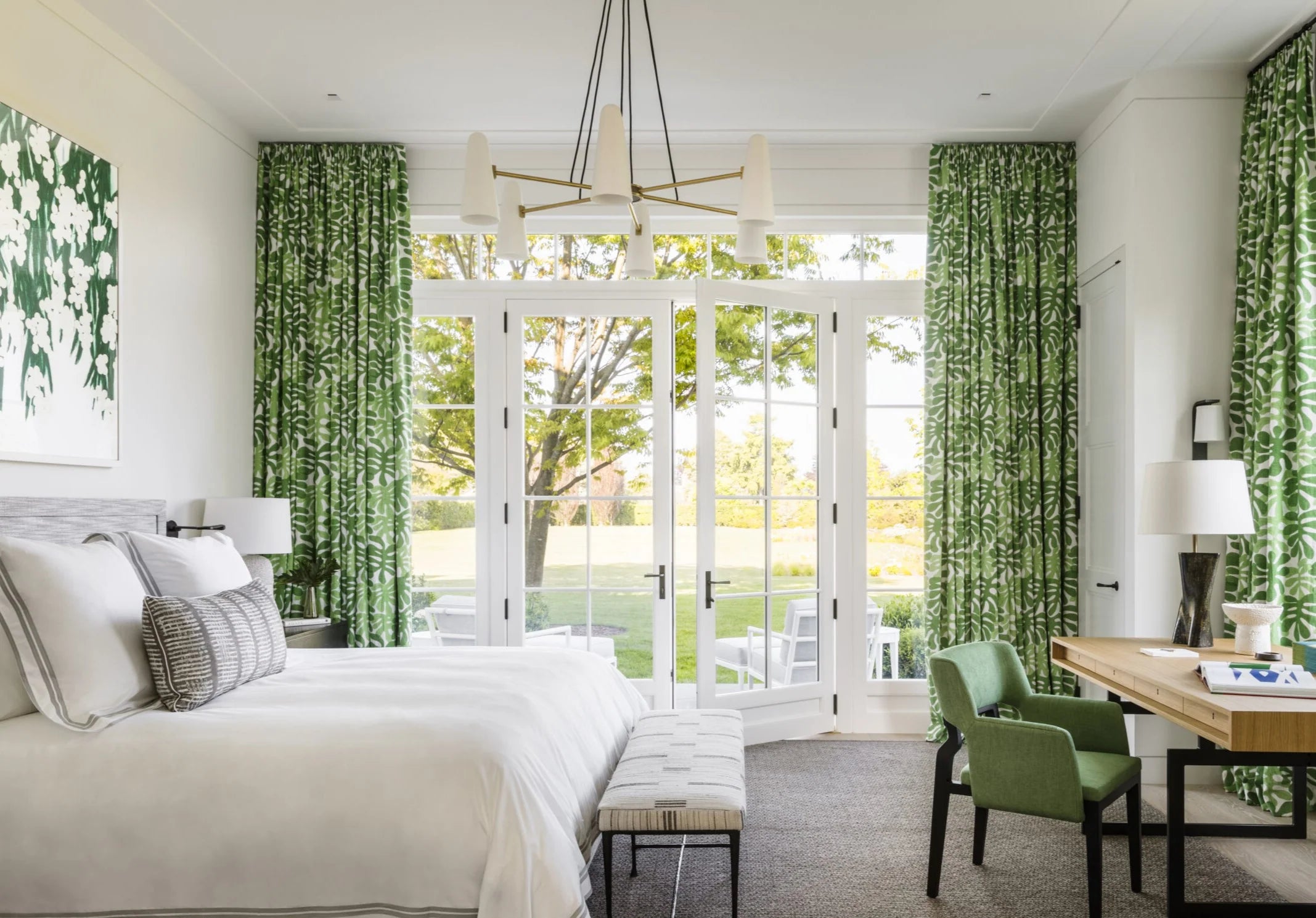 Nature-Inspired Palette: Since the view is the star, the curtains must ideally complement, not compete. Therefore, soft neutrals and nature-inspired tones are the tried and true formula here. Think breezy whites, sunshine yellows, sage and olive, cerulean and azure - colors that wrap you in nature’s embrace even when the curtains are drawn over the doors.