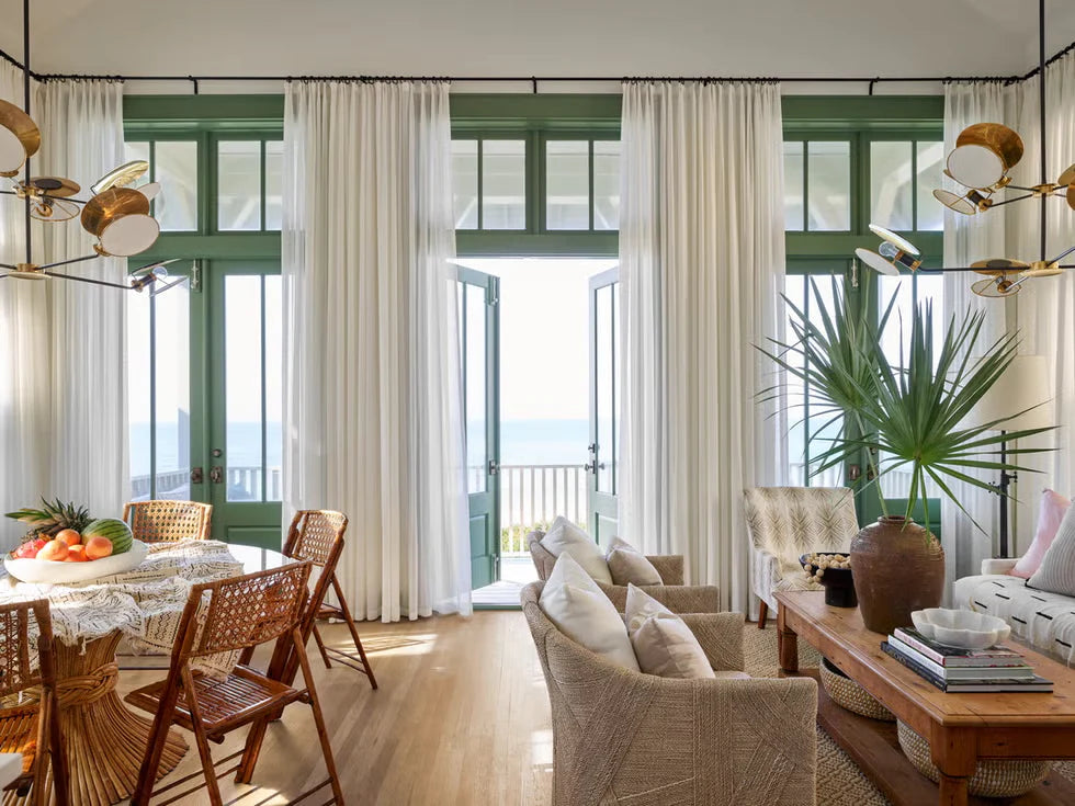 Covering the entire patio doorway with delicate, hazy veils just adds more whimsy to an already heartwarming scene. The light streams in softly - flooding the room, pooling on the floor, settling gently on every surface with fleeting wispy shadows - turning this space into a dreamy escape. Wrapping the patio with a touch of discretion, sheer curtains as stand standalone treatment works best for living rooms, kitchens, and dining areas that are not too private.