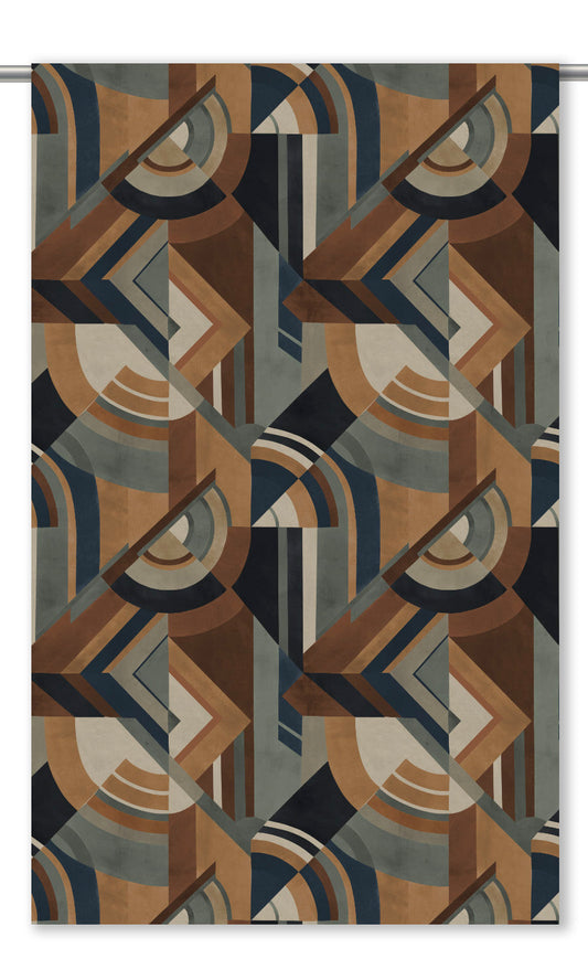 'Amadeo' Modern Abstract Velvet Custom Window Curtains (Caramel/ Agave Green/ Mahogany Brown)