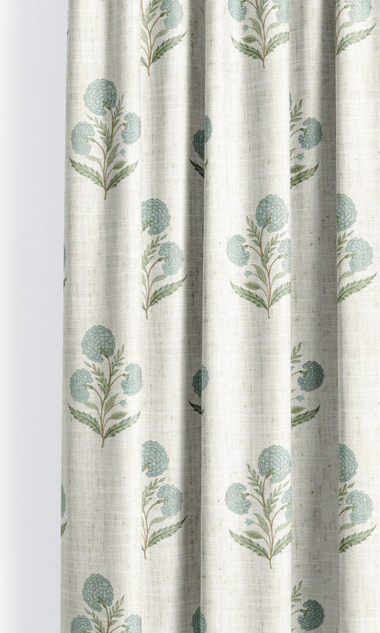'Fresh Flora' Fabric Sample (Green/ Blue/ White)