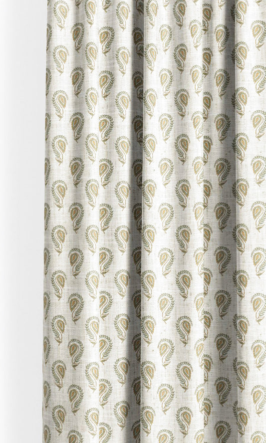 'Dajshi' Fabric by the Yard (Warm White/ Olive Green/ Sienna Yellow)