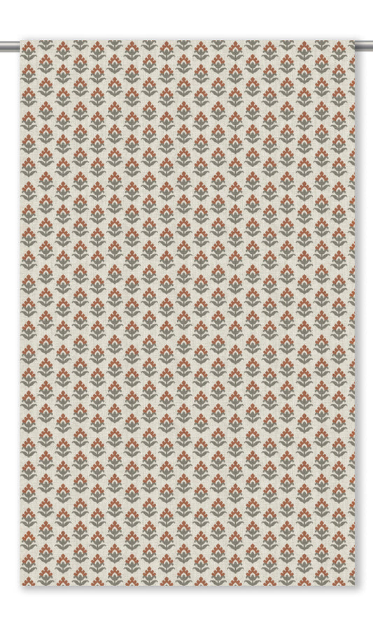'Sunset Flora' Fabric by the Yard (Cream/ Rust Red/ Gray)