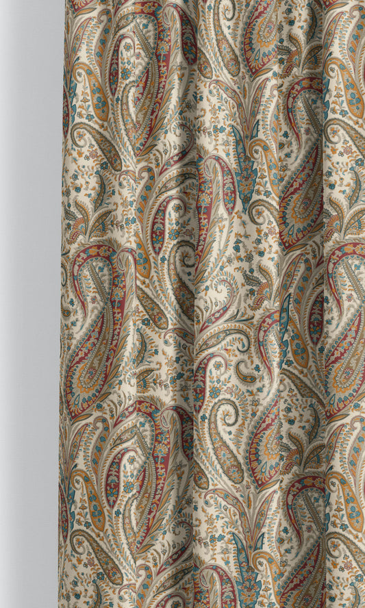 'Mahzun' Fabric by the Yard (Cream/ Green/ Red/ Orange)
