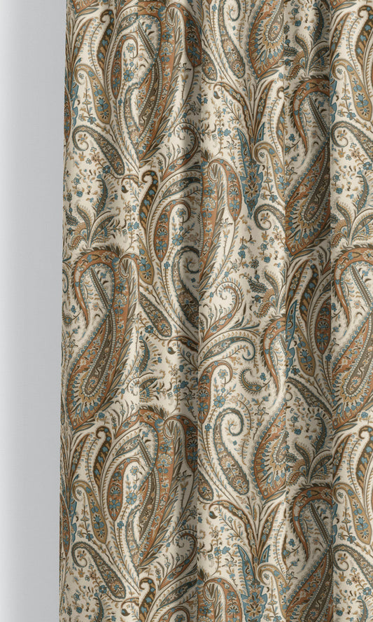 'Rebecca' Fabric by the Yard (Mahogany Brown/ Teal Green/ Salmon Pink)