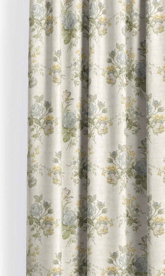 'Bamboo Canopy' Fabric Sample (Cream/ Cornflower Blue/ Green)
