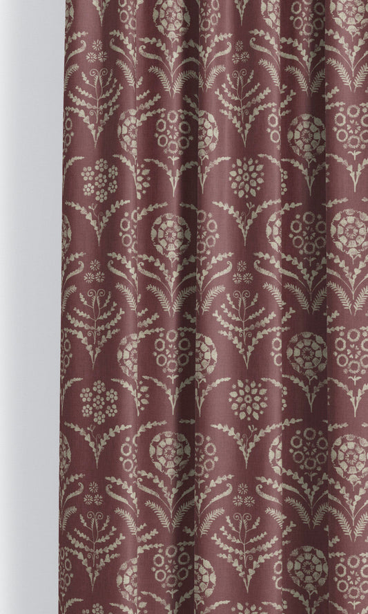 'Royal Botanic' Fabric Sample (Cream/ Maroon Red)