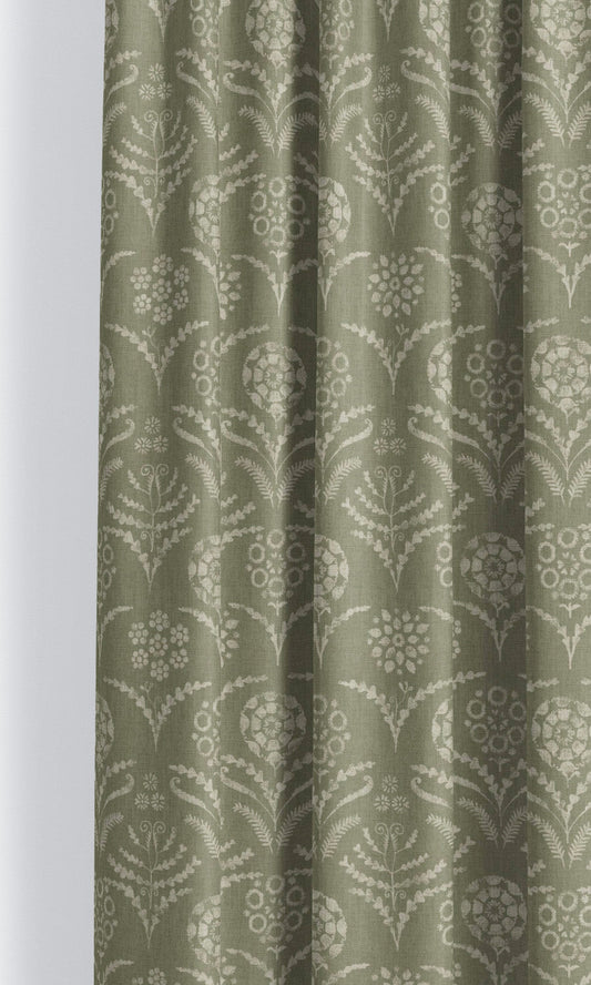 'Kentura Springs' Fabric Sample (Dark Sage Green/ Cream)