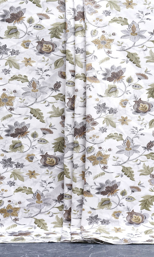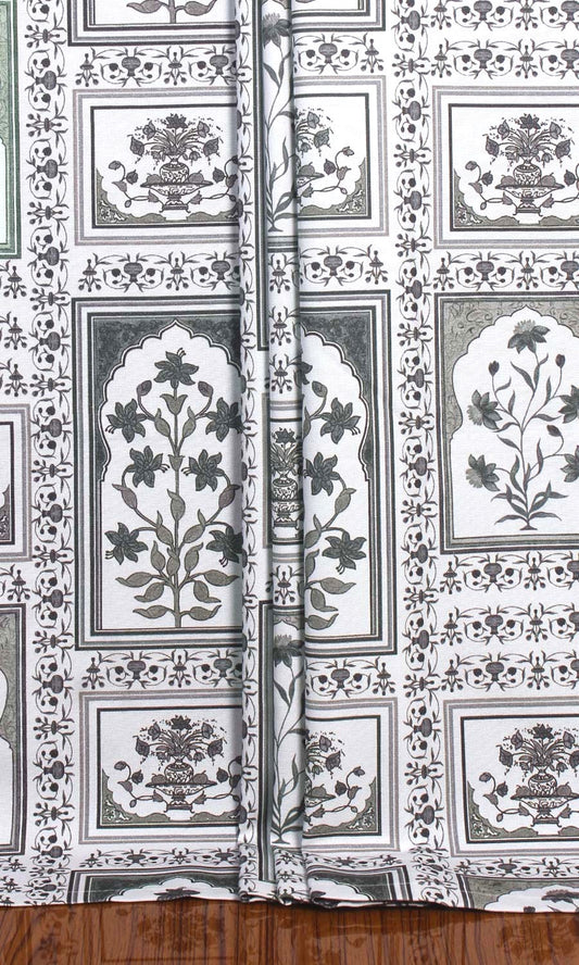 'Saura' Fabric Sample (White/ Grey/ Green)