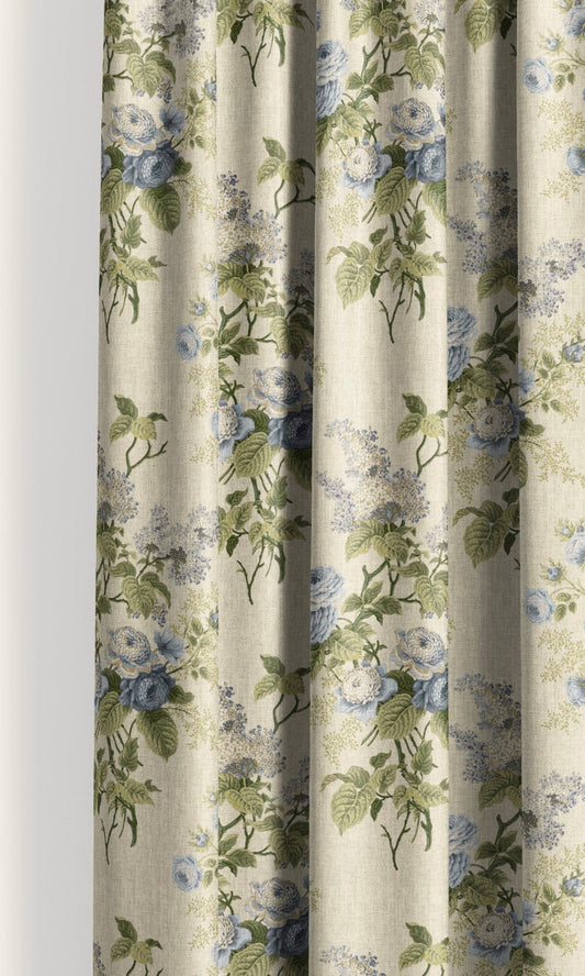 'Durshet' Fabric by the Yard (Cream/ Powder Blue/ Green)