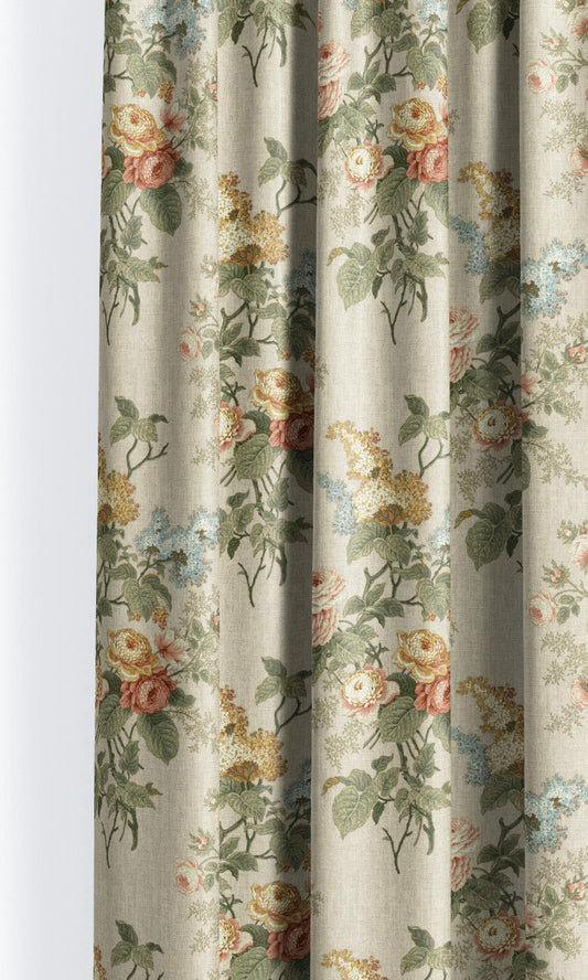 'Palace Gardens' Fabric by the Yard (Beige/ Olive Green/ Red)