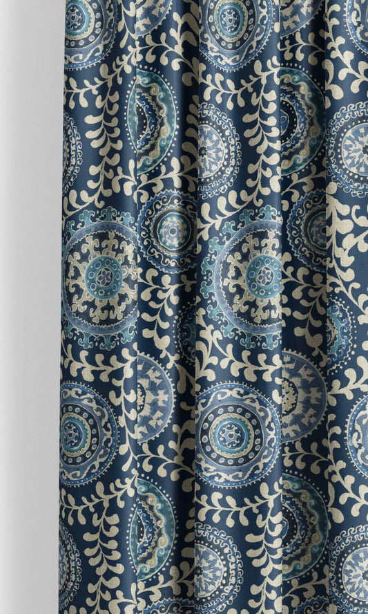 'Santorini' Fabric Sample (Midnight Blue/ Cream)