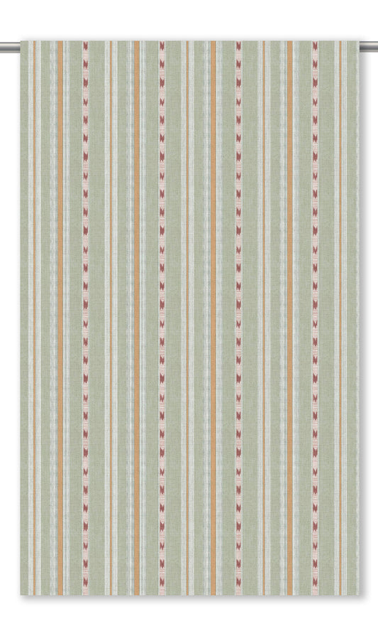 'Castle Tower' Fabric by the Yard (Soft Green/ Orange/ Brick Red)