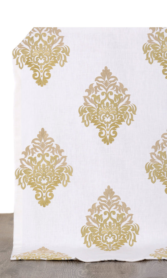 'Camelot' Fabric by the Yard (Off White/ Green)