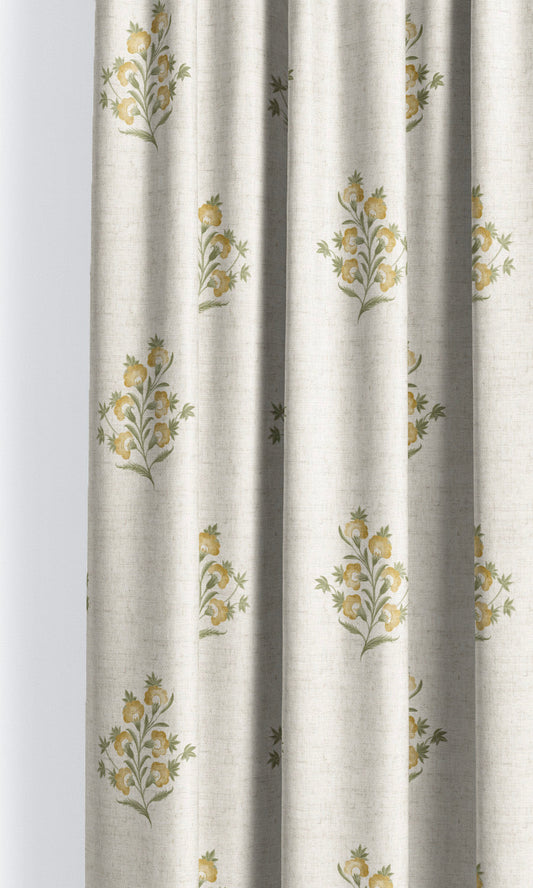 'Paradise Bird' Fabric by the Yard (Cream/ Ochre Yellow/ Green)