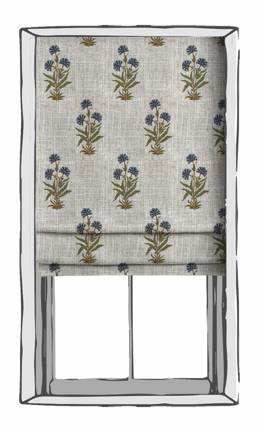 'Florentina' Fabric by the Yard (White/ Navy Blue/ Green)