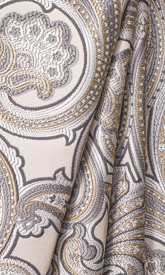 'Qaitbay' Fabric by the Yard (Ivory/ Beige)