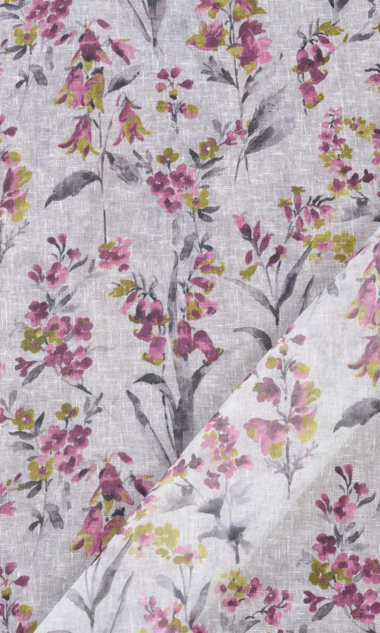 'Sweet Deal' Floral Print Bespoke Curtain Panels (Pink/ Grey)
