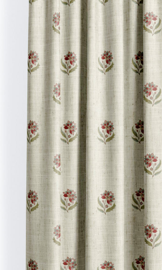 'Afrodita' Block Print Floral Custom Size Drapes (Ivory-Beige/ Red/ Pink)