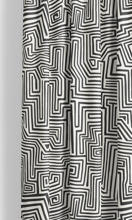'Ivan' Maze Line Print Made-to-Measure Drapery (Black & White)
