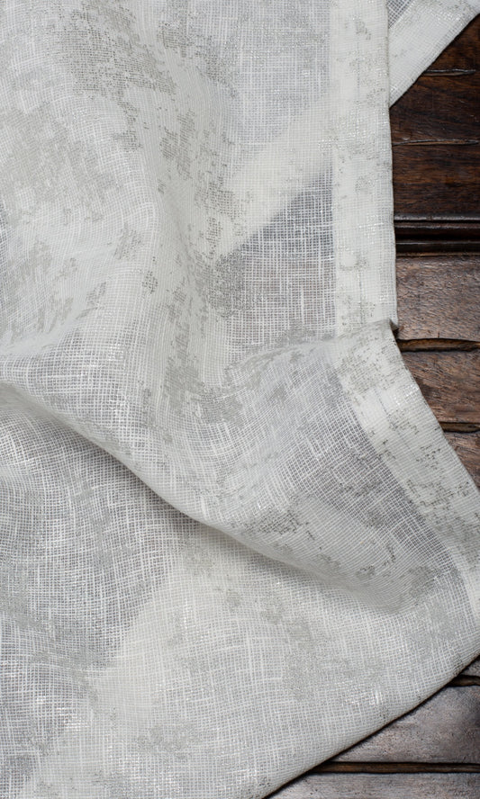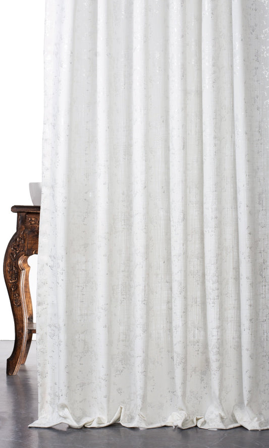 'Delicate Snow' Textured Semi-Sheer Bespoke Curtain Panels (White/ Silver)