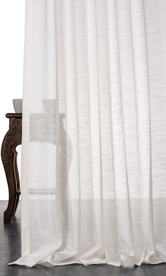 'Good Grace' Plain Linen-Texture Sheer Bespoke Curtain Panels (White)
