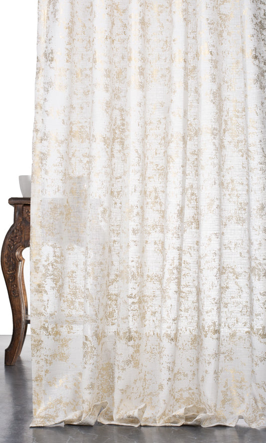 'Vanilla Drift' Metallic Print Semi-Sheer Made-to-Measure Drapery (Cream/ Gold)