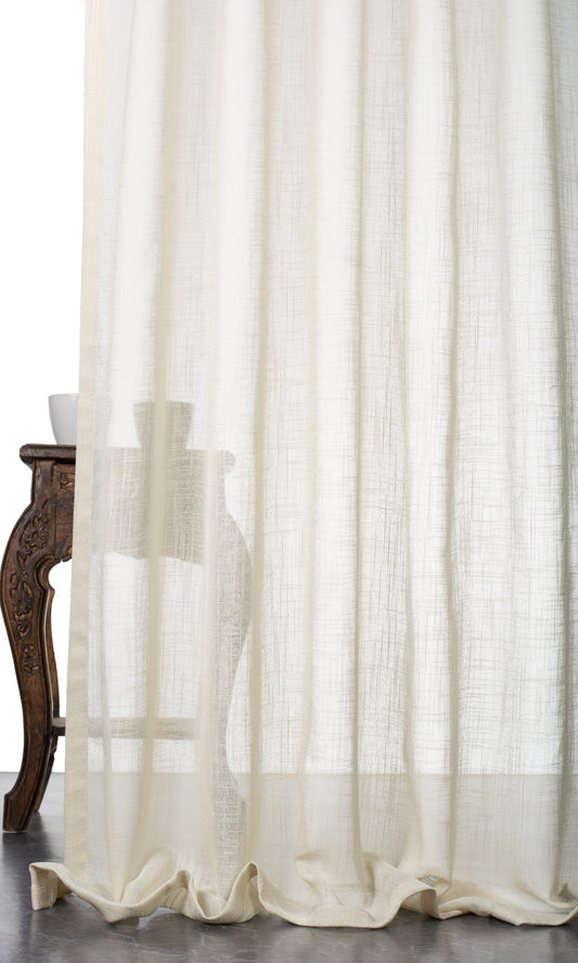 'Creamy Spell' Poly-Linen Sheer Bespoke Curtain Panels (Ivory)