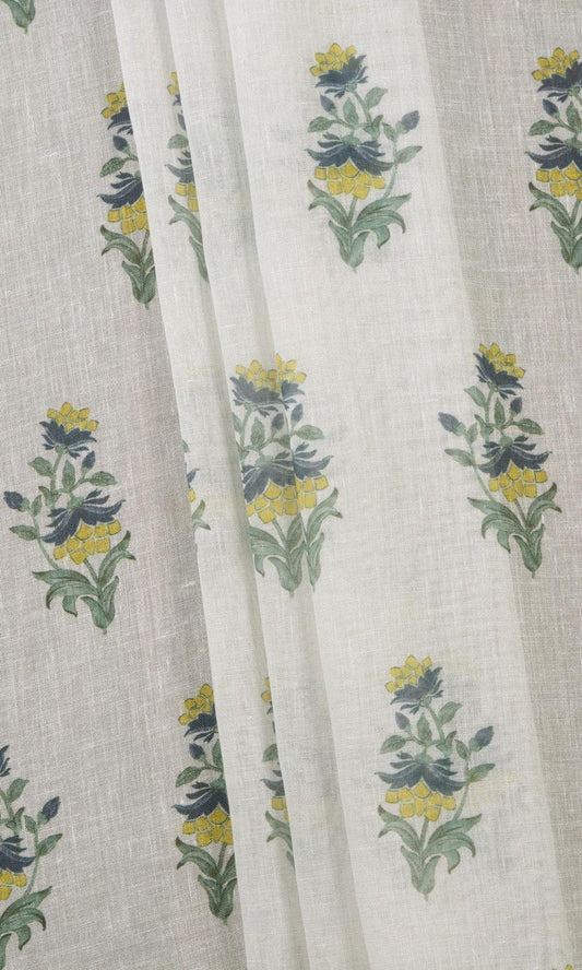 'Zehab' Sheer Floral Bespoke Curtain Panels (White/ Green/ Yellow)