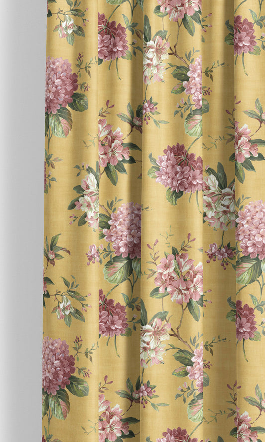 'Summer Sun' Chinoiserie Floral Bespoke Curtain Panels (Yellow Ochre/ Hague Blue)
