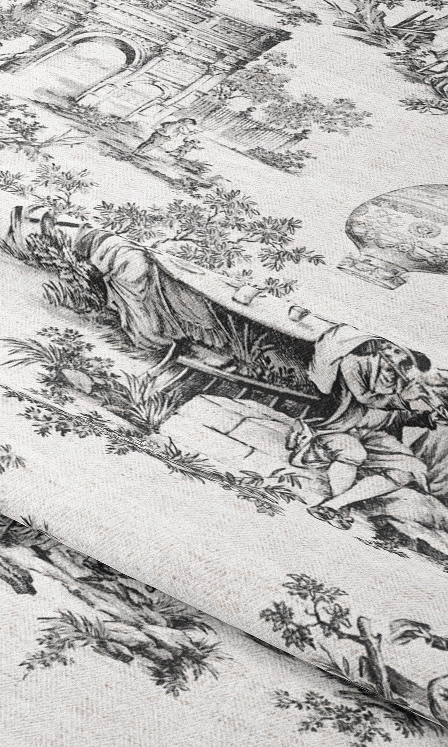 - Its classsical toile print that unfurls a narrative of Versailles, interweaving architecture, pastoral idylls and landmark moments into a soft, storybook charm