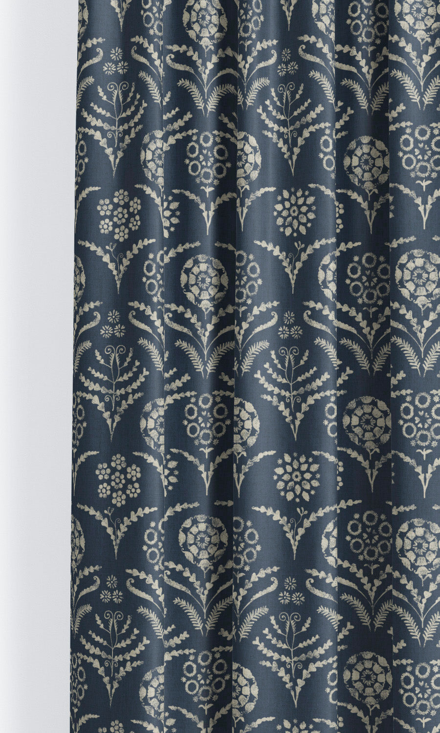'Adelaide' Fabric by the Yard (Navy Blue/ Cream)