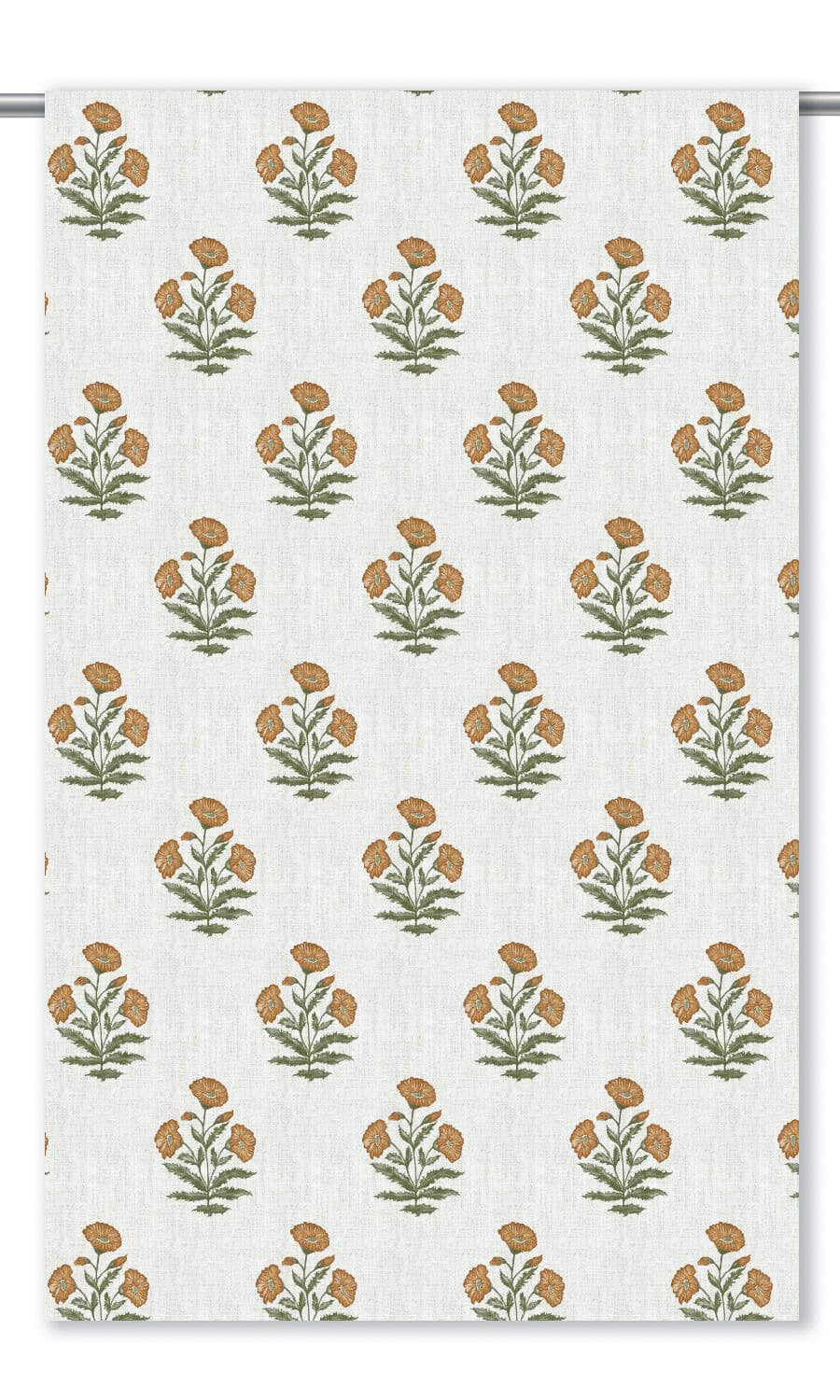 • Its hand-blocked Indian poppy motif, scattering a garden's grace, and stamped with heritage elegance