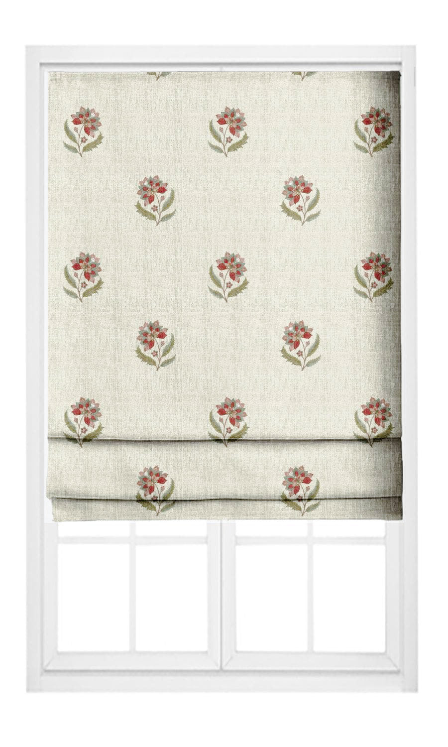 - The cottagey charm of its textured beige, peppered with red and green accents