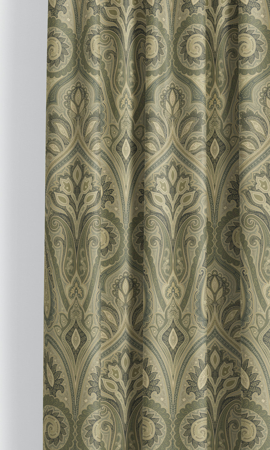 - Pair with traditional hardware: Elevate the regal appeal of these paisley damask velvet curtains with ornate brass or bronze hardware. Look for sculptural detailing and decorative touches that underscore the classical elegance of the motif and complement the drapery with the grandeur it deserves.