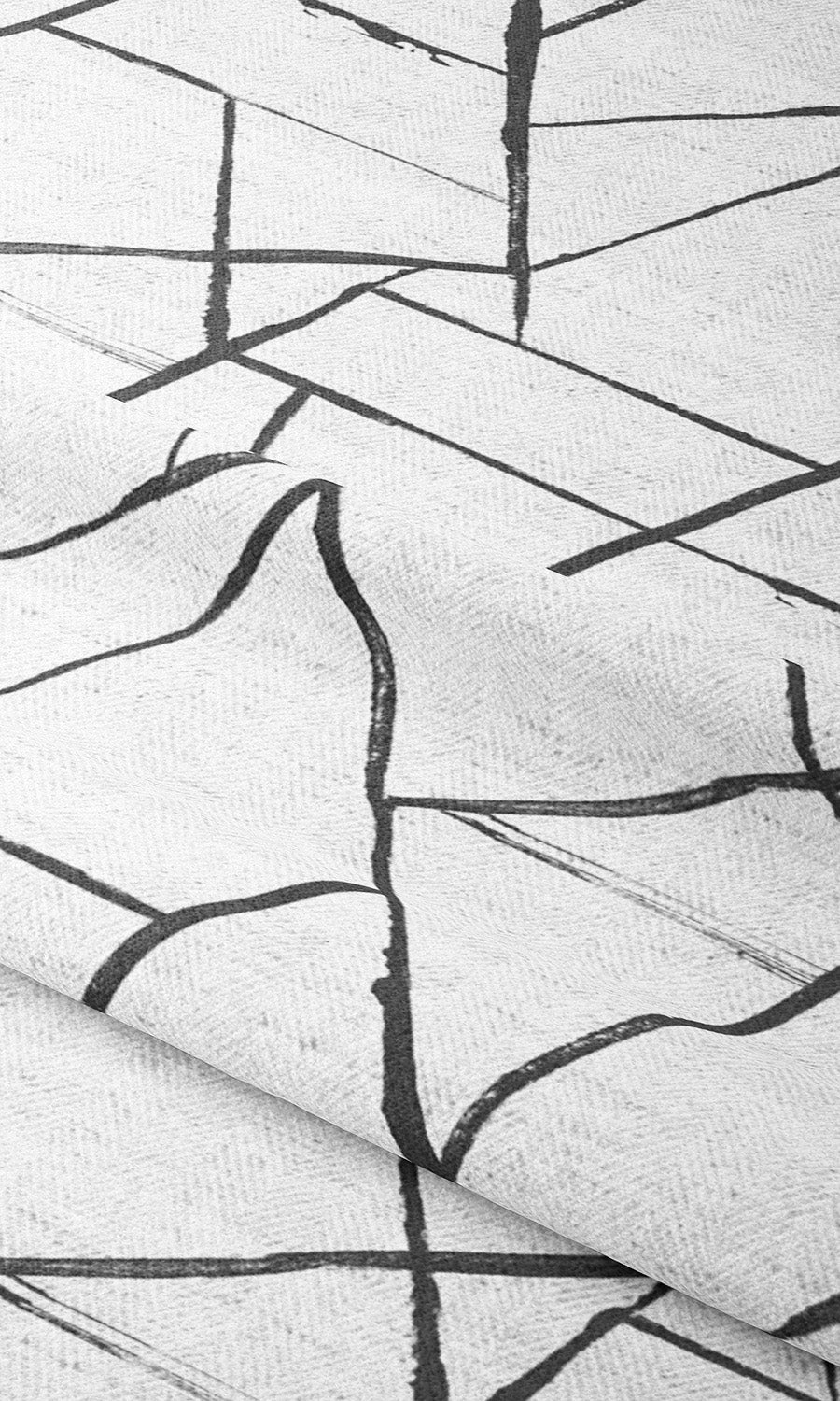 • Its abstract line print whose sharp-edged geometry meets the fluidity of hand-drawn strokes