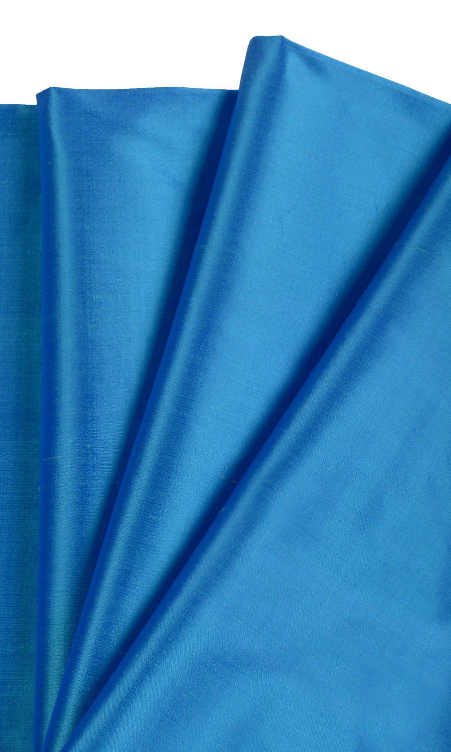 So elfin in looks that it brings an ethereal quality to the space draped in its silken folds. The textile is good quality pure silk; the color is a luster-filled azure blue. Softly glowing and just so gorgeous to look at, this fabric is sheer elegance.