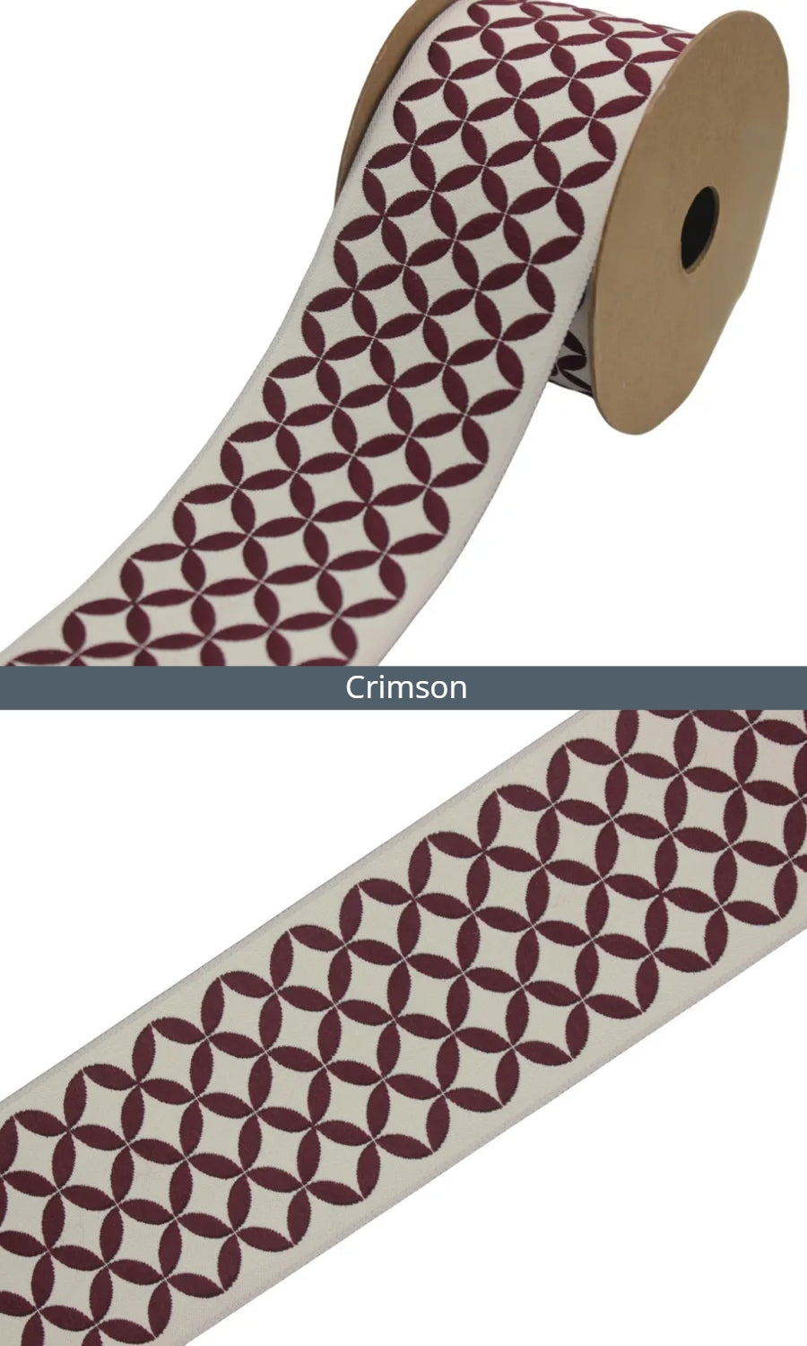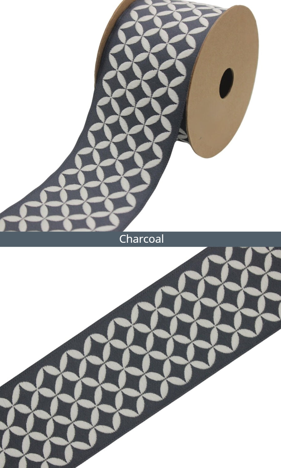 Dress up your custom roman shades with an elegant ribbon trim from our 'Anatolia' collection of embroidered jacquard trims.