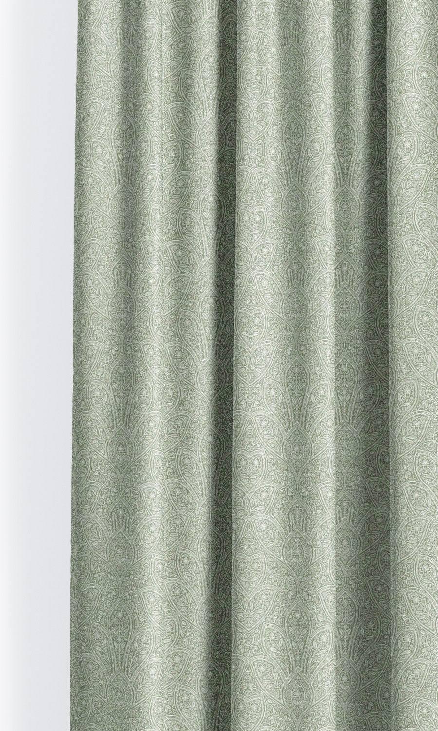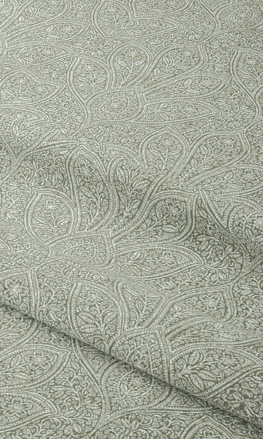 • Its lush expanse of soft green where white accents gently awaken the pattern with quiet contrast