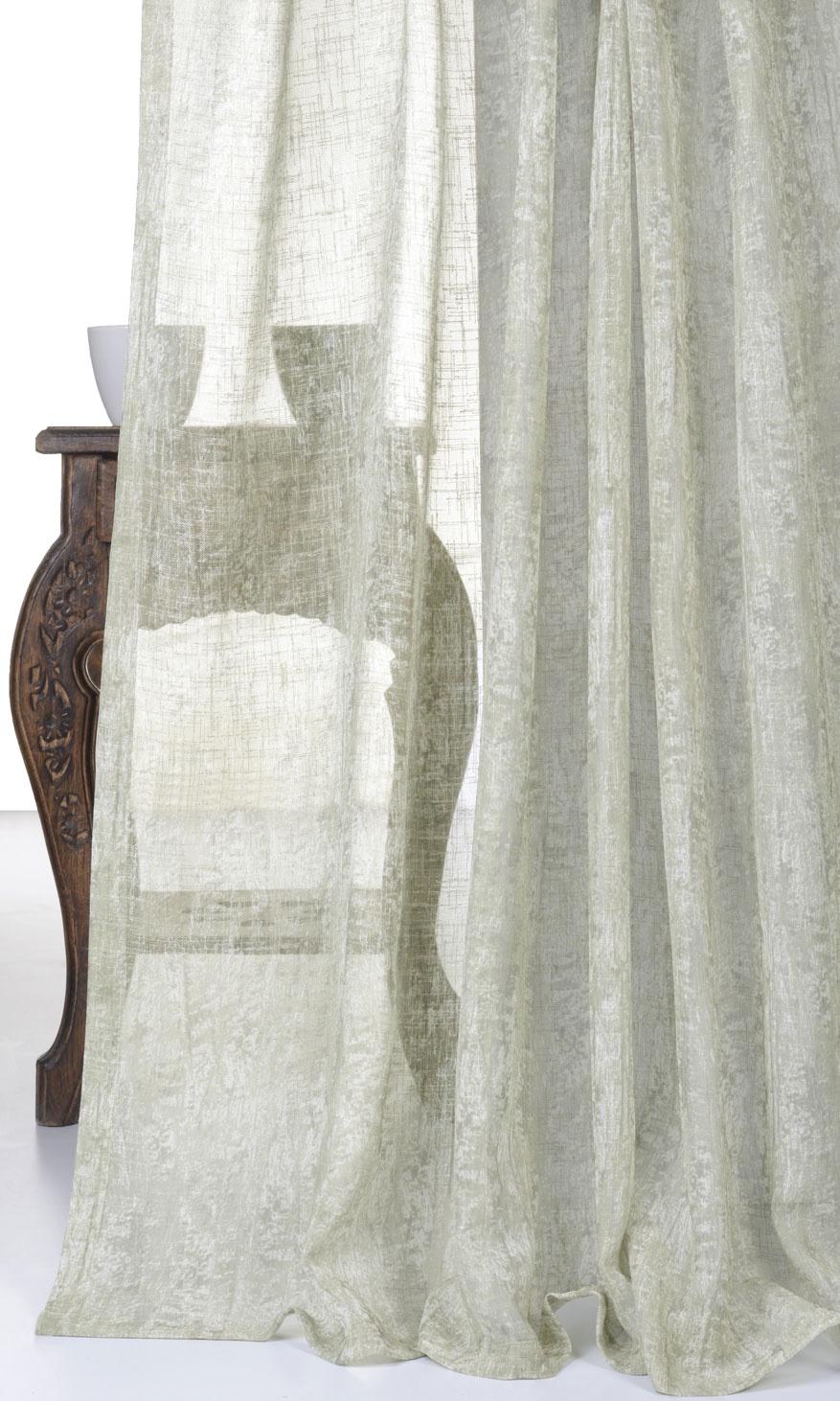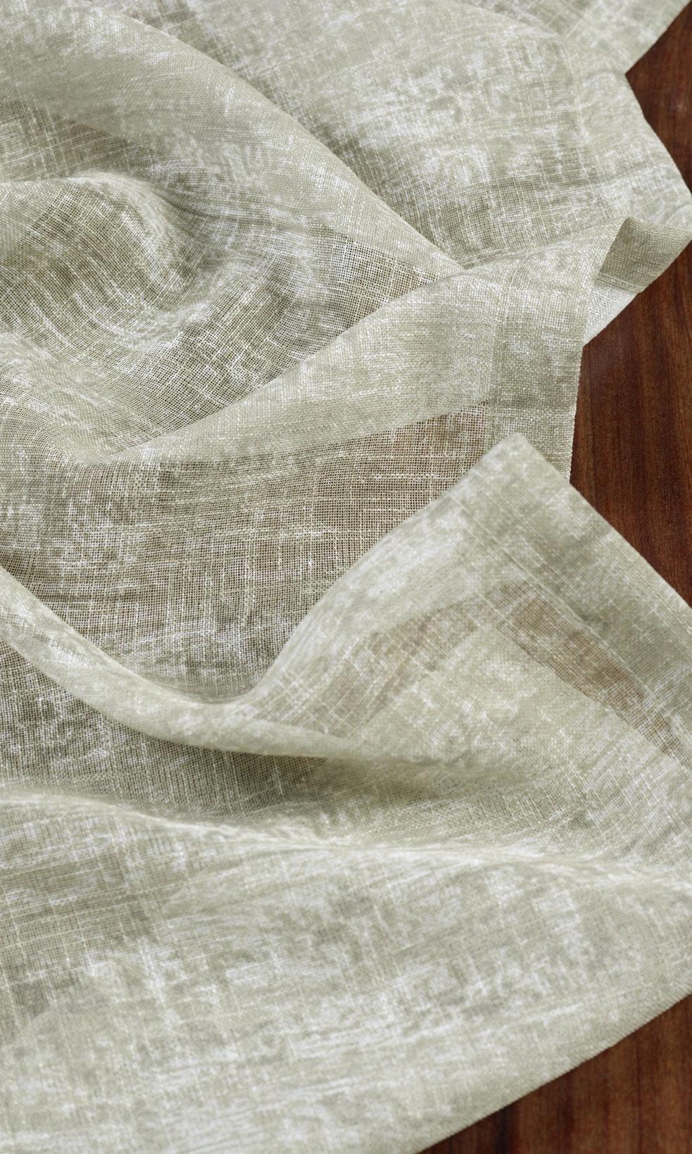 Break away from the stereotypical white sheer by welcoming a tinge of color. A mild dose of understated green in a nebulous abstract print accentuates the visual delicacy of this fabric and lends a contemporary feel to the space. Make a bare patio door cozy with this translucent dressing or use as a privacy layer in a bedroom, paired with solid green opaque drapery.