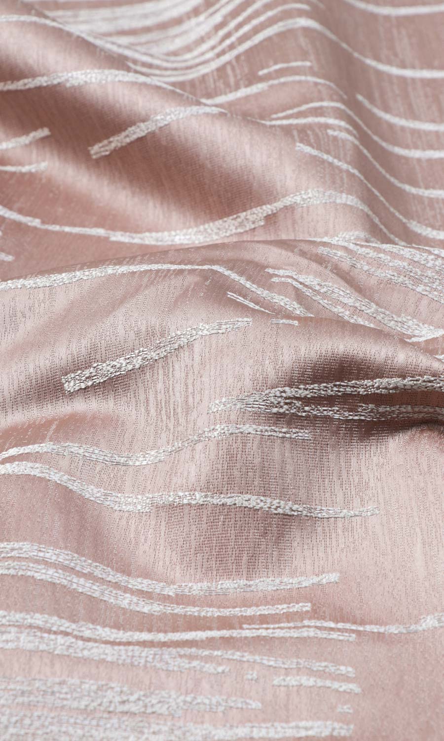 Sheer razzmatazz in a dapper pink. White glazed print that look like the ripples of a pond render a sense of movement and dynamism to the room while dusty pink serenades in the background. Accentuate a formal area's resplendence, a feminine bedroom's dreamy elegance, or a kids' bedroom's playfulness with this gorgeous number!