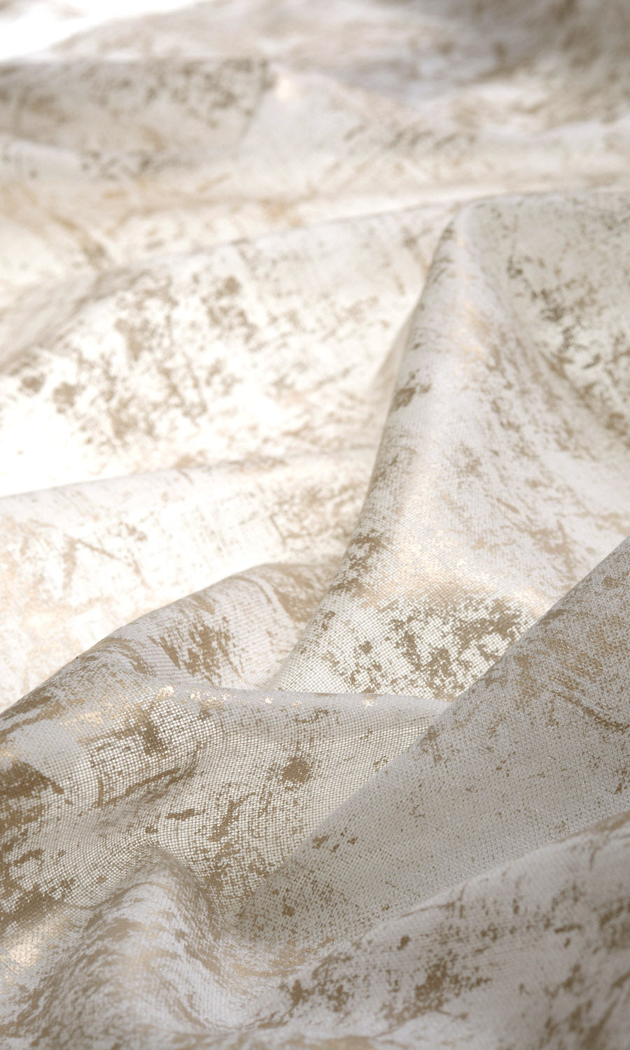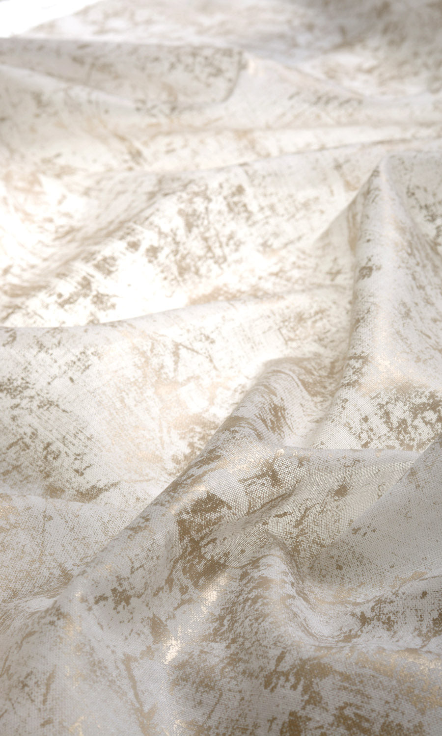 Poetically described as golden sunlight on white snow. It is a sheer drapery fabric with its vast white expanse randomly touched with metallic golden color. The abstract tissue paint finish adds to its gleaming beauty. Good for standalone draperies as well as for mixing and matching, Aurum is a touch of gold for your interior.