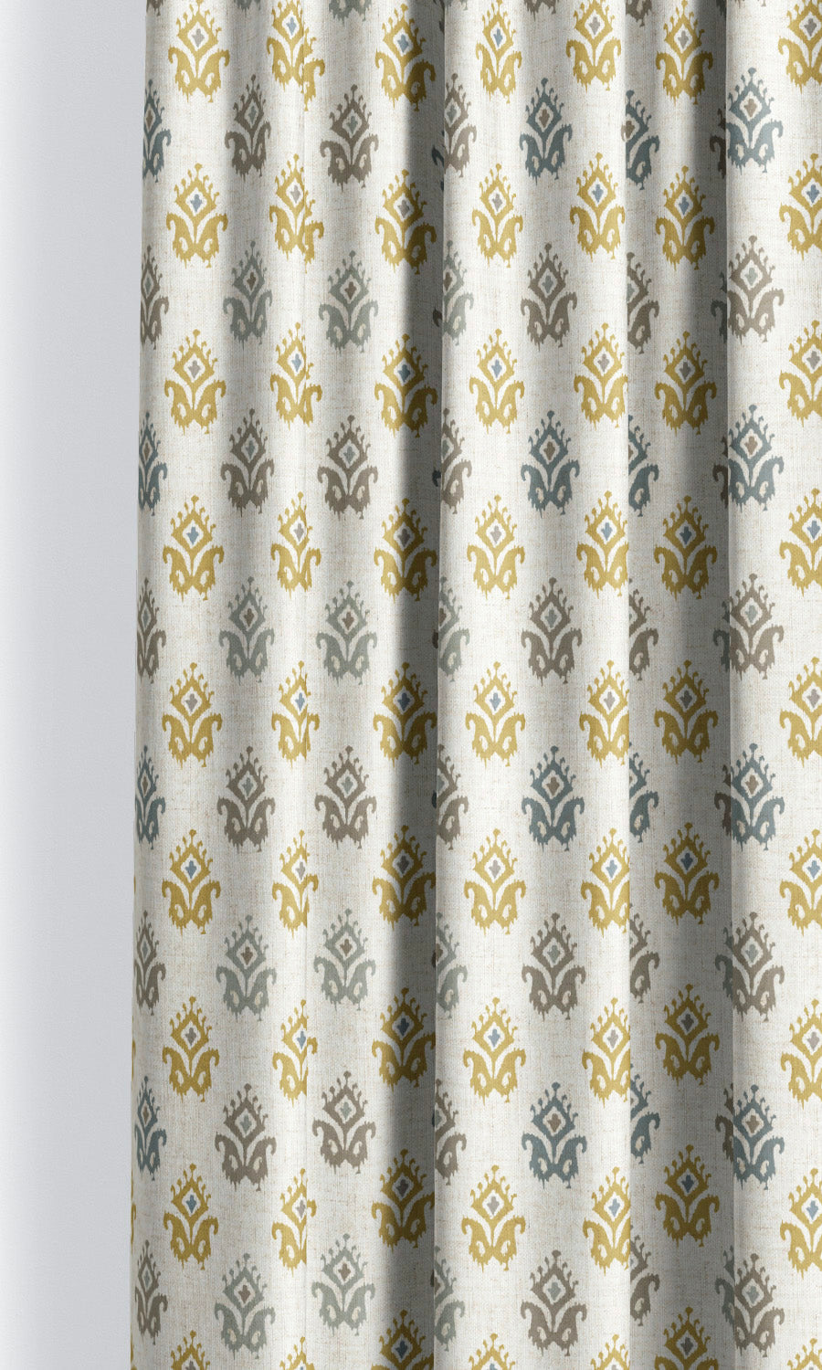- Introduce paisley with a modern twist: When you want design to narrate a story of wanderlust with a relaxed air, consider Autumn Sea curtains. In this drapery, paisley sheds its expected formality by embracing ikat's casual flair, replacing lustre with texture and geometric precision with hazy silhouettes. This blend of global taste and everyday comfort is ideal for transitional decor, informal rooms and casual eclectic homes - where everything feels at once homely as well as cosmopolitan.