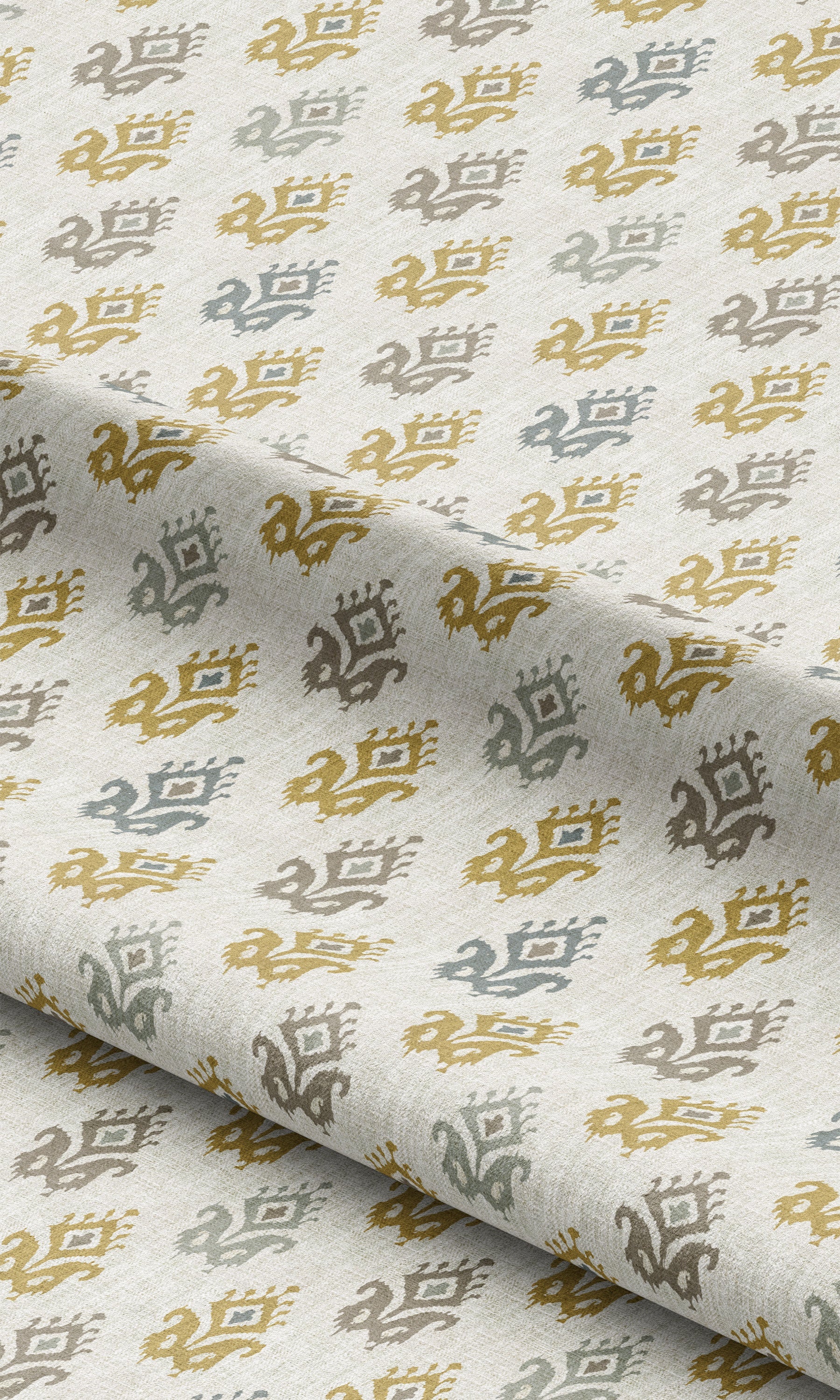 'Autumn Sea' Fabric by the Yard (Cream/ Mustard Yellow/ Blue-Gray)