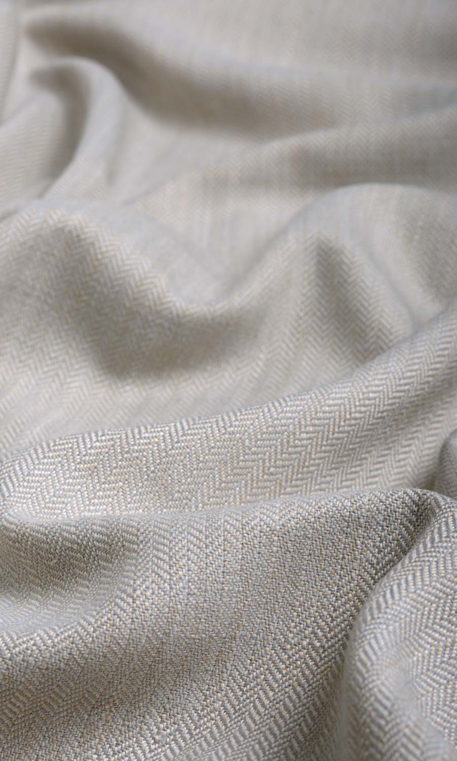 Featuring the classic herringbone weave, this self-patterned fabric might interest fans of monochrome on a richly texture base. The soft beige, gray and white tones produce a calming effect and backdrop dark and bold-hued elements of your home very well. Lacking prints, this drapery fabric is ideal for styles that create designs through the construct such as pinch pleat drapes, relaxed roman shades, and front-slatted roman shades.