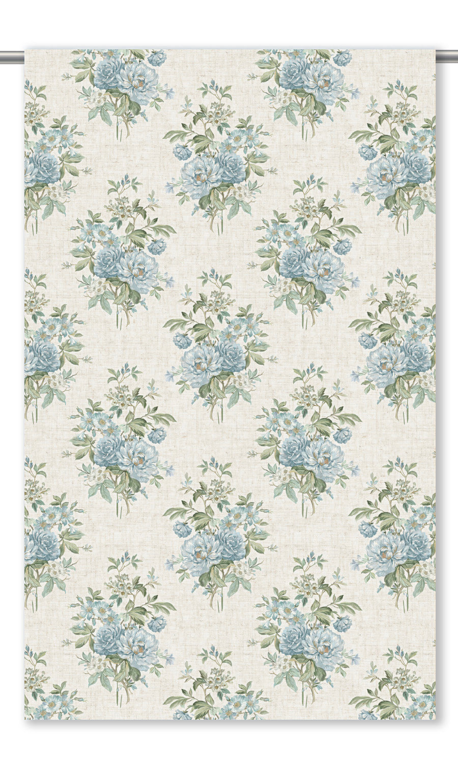 - Opt for European relaxed fold style: Dress Bamboo Canopy as European relaxed roman shades where its linen-textured floral motif can most fittingly unleash its cottagey elegance. The cascading scallop, coupled with soft hues, delicate blossoms, and rustic texture, anchors the space in an unhurried, homespun elegance.