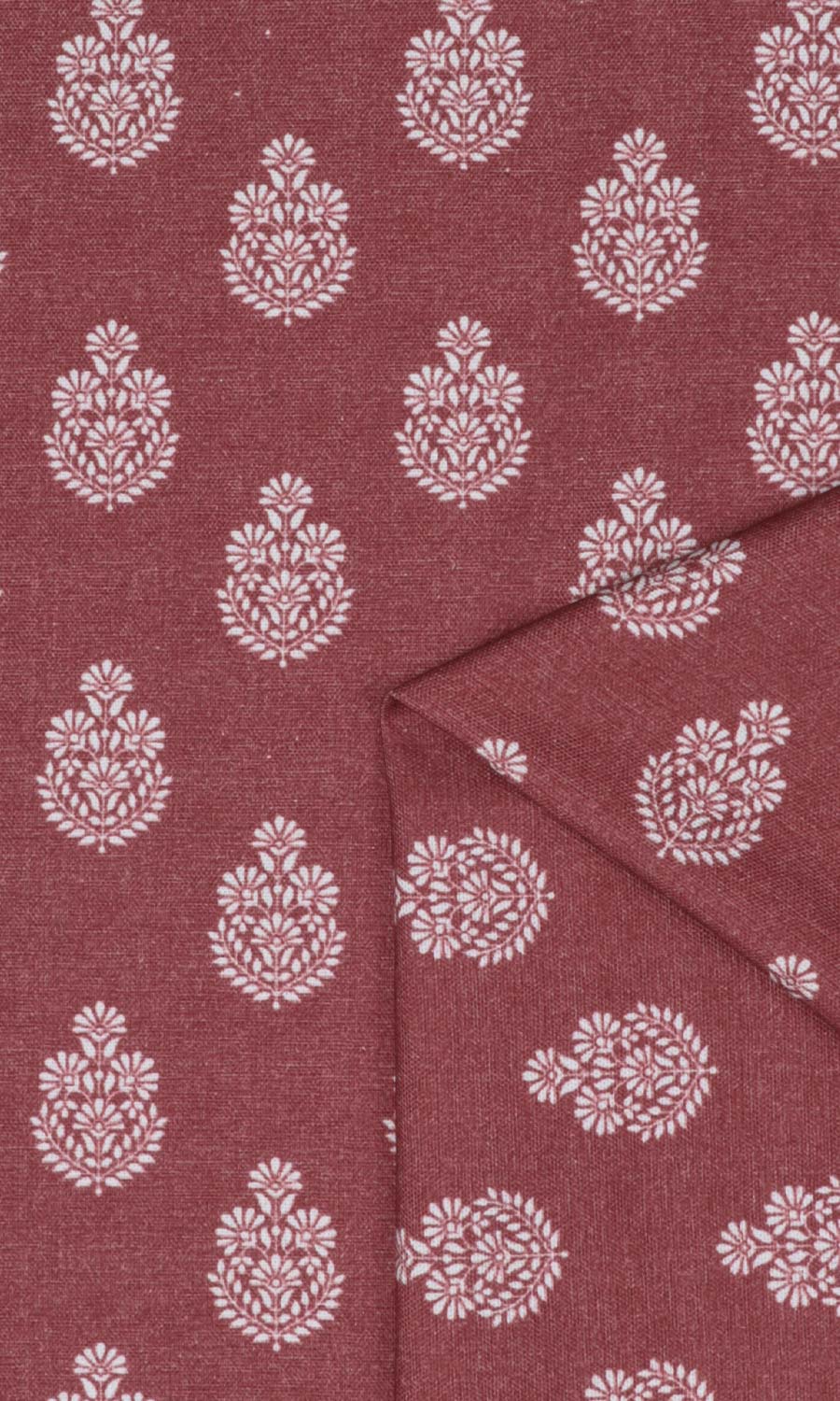 A floral with an old-world charm! Bearing the simple elegance of block print motifs and its invaluable ingredient of the human touch, Banas brings you ethnic Indian florals in a white-on-red color scheme. Make your home more inviting and warm with the vibrant colors and eclectic appeal of this gorgeous beauty.