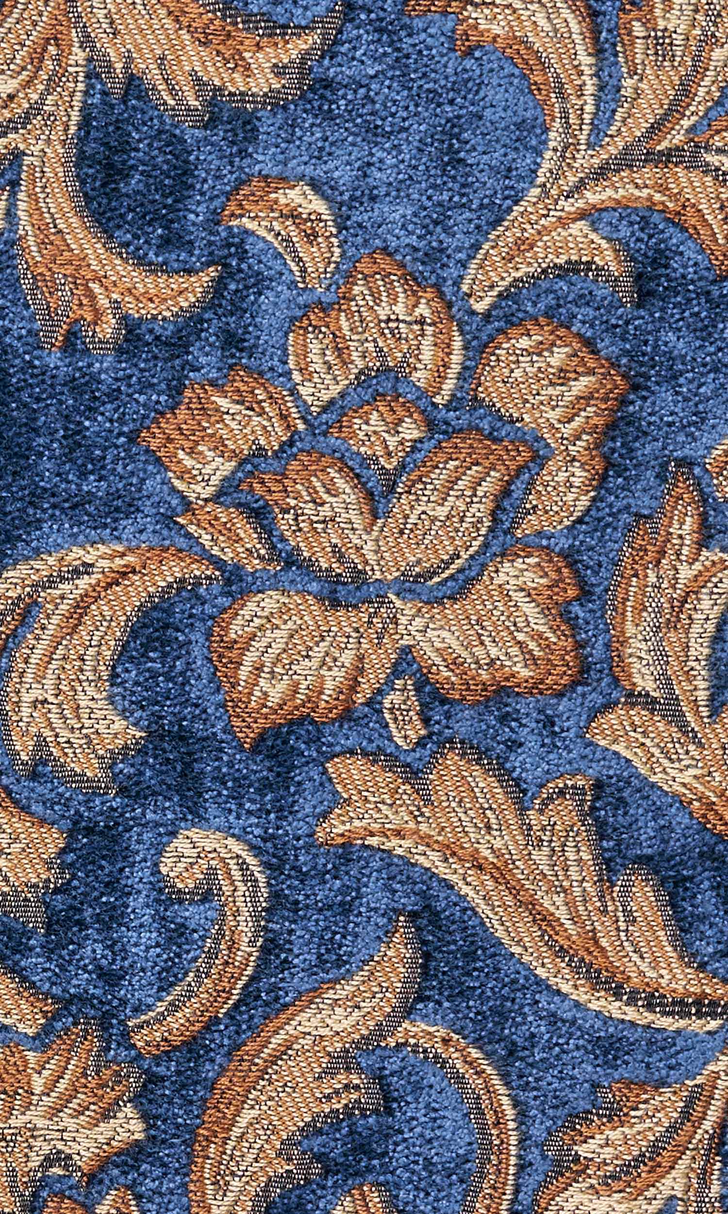 This jacquard woven fabric redefines magnificence with its vintage ambience, velvet pile feel and lustrous hues of beige, brown and navy blue. The floral pattern features lush blossoms, foliage and tendrils. Truly a royal fabric that will make your guests go wow!