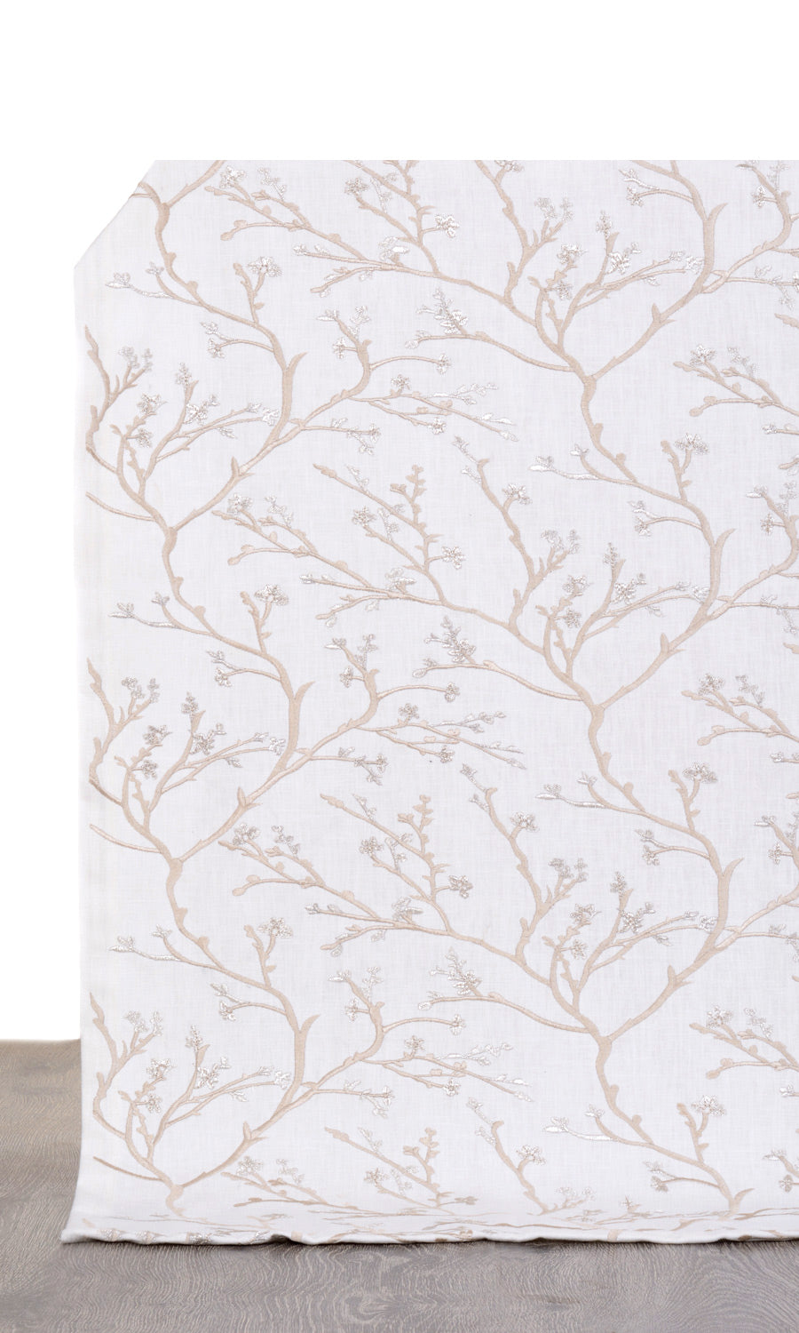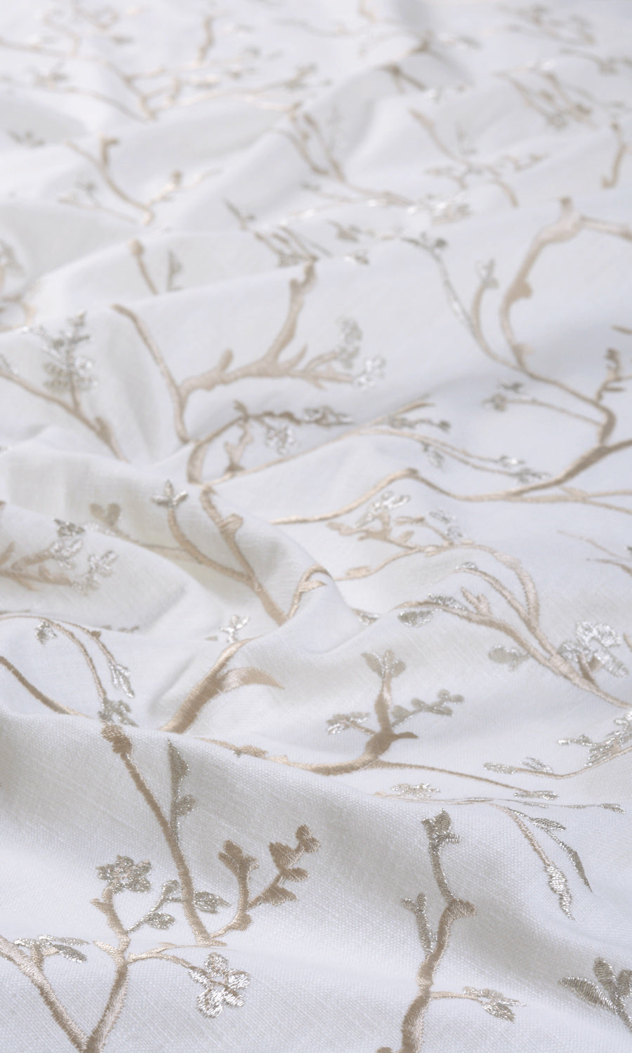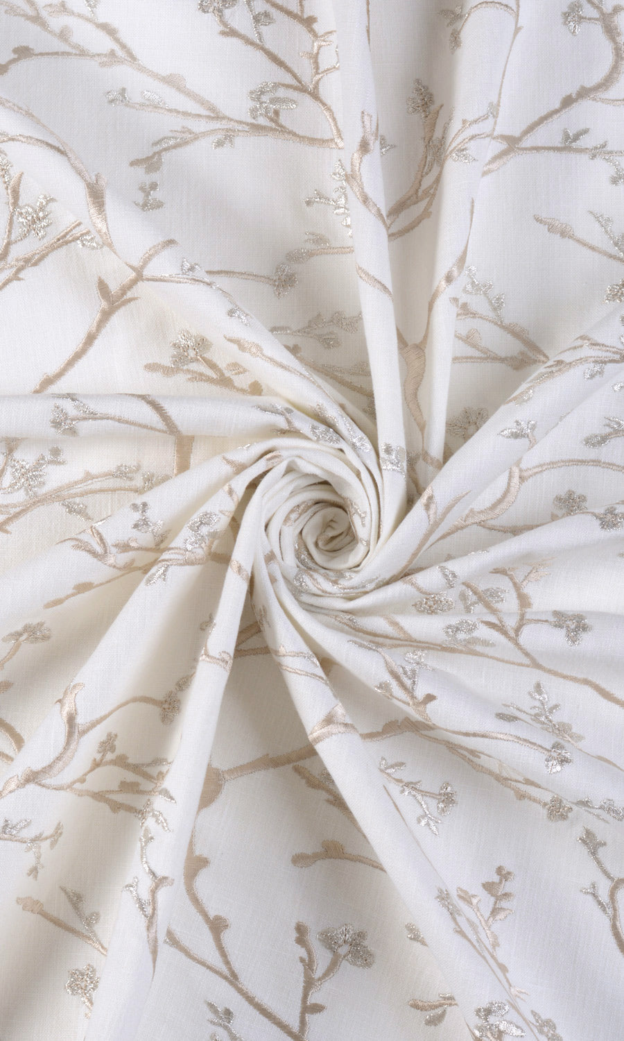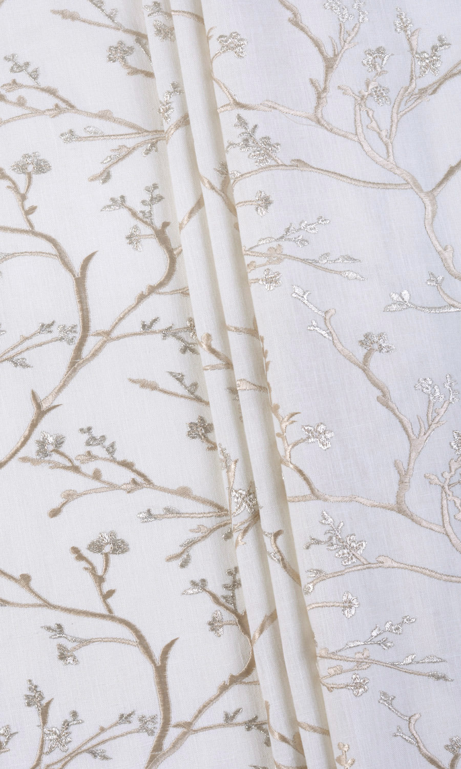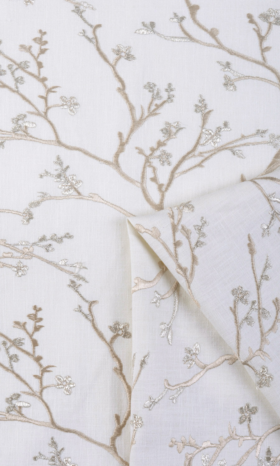 Beach Glass is for those who prefer a majestic touch in their interiors. The base ivory fabric is a beautiful blend of cotton, polyester and viscose that has been embroidered with an ornate floral vine pattern in pale beige. Sophisticated with just a hint of sumptuousness, this fabric works well for formal spaces.