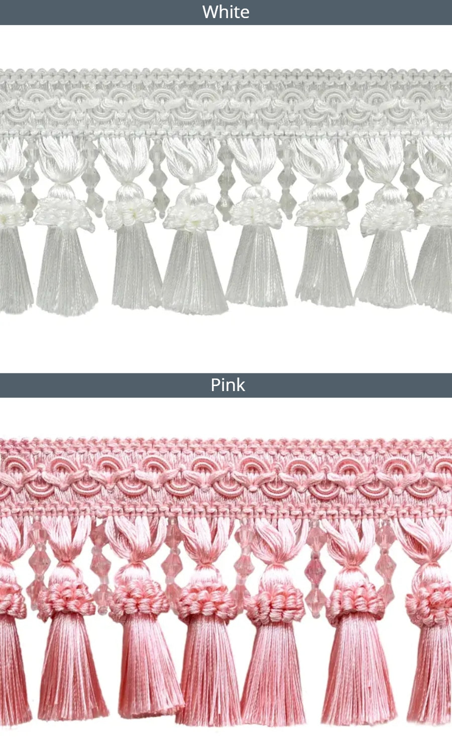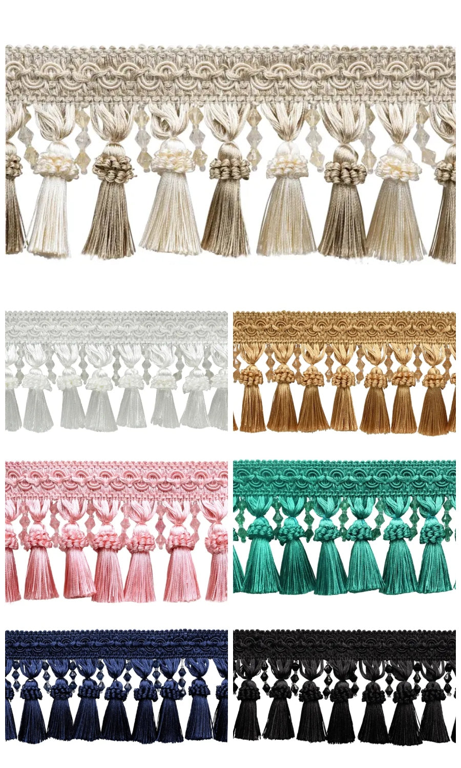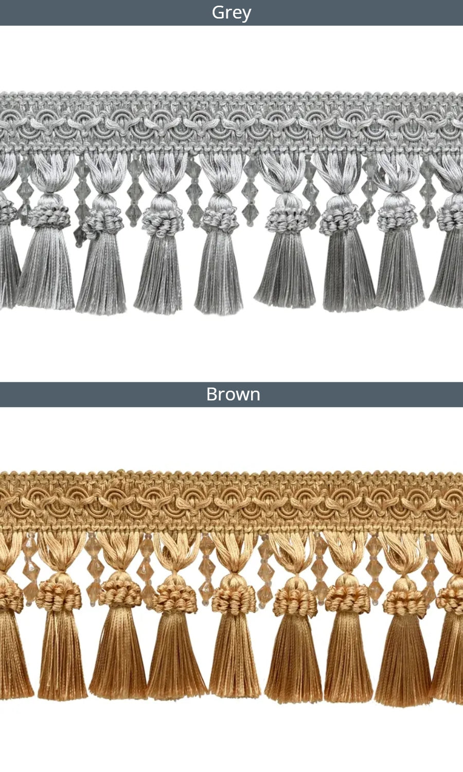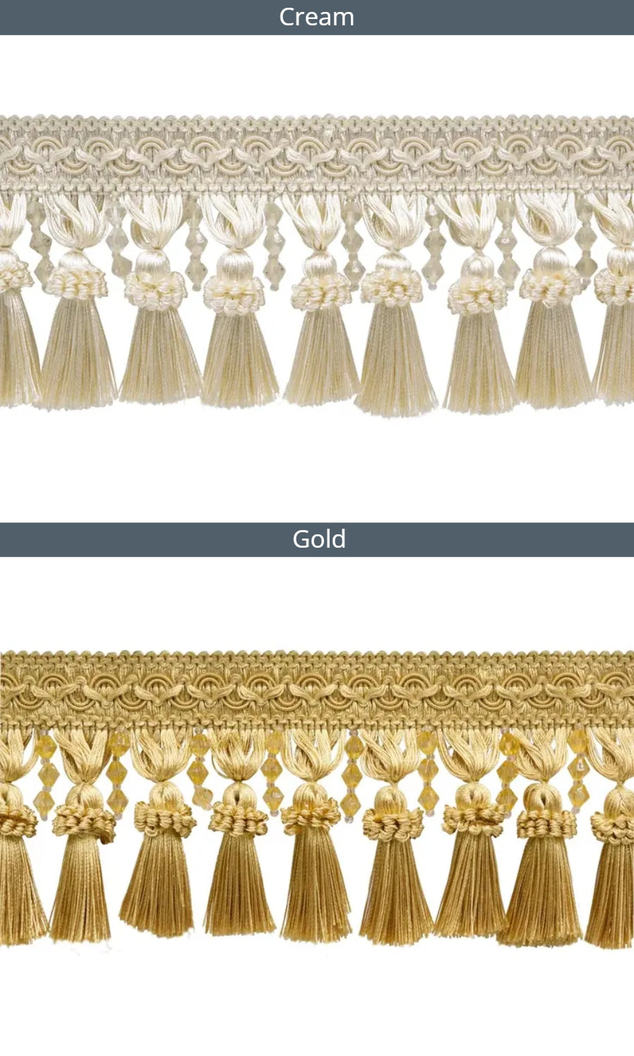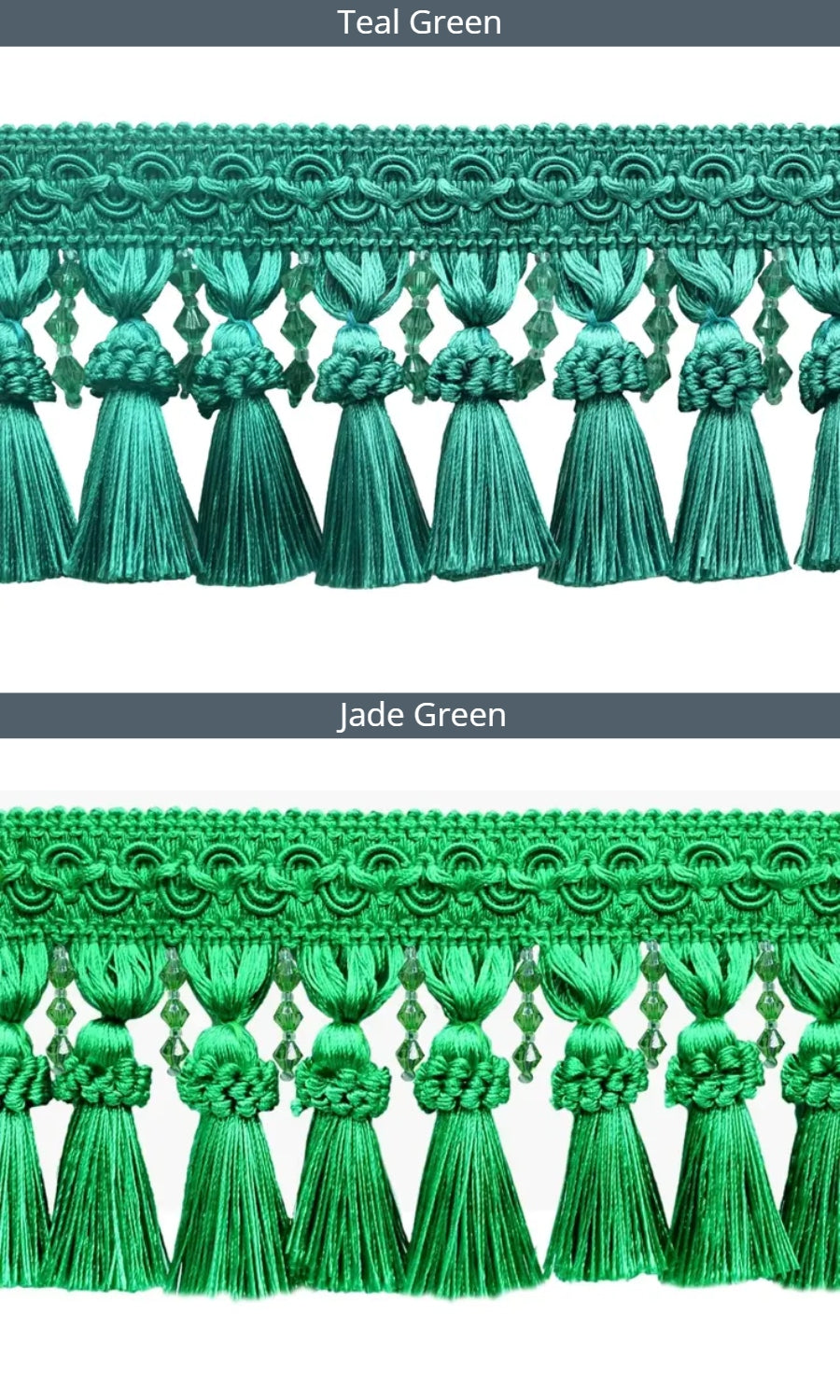 Dress up your roman shades with our delightfully rich beaded tassel trims dancing on the bottom hem of your shade.