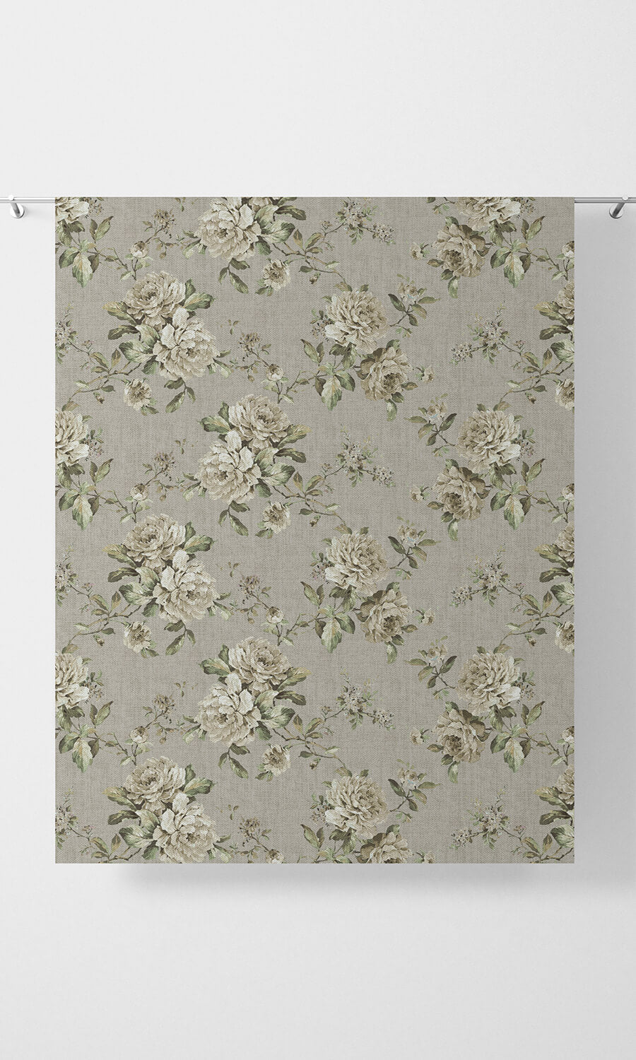 Brighten your home with the freshness of a Spring morning! Set in a greige backdrop, the off-white roses featured on this fabric can bring the serenity of a blooming garden indoors. The vintage French floral pattern paired with a modern color palette makes window treatments in Belgian a timeless decor element. Drapes and roman shades stitched of this lovely fabric promise to render softness and feminine touch to any interior.